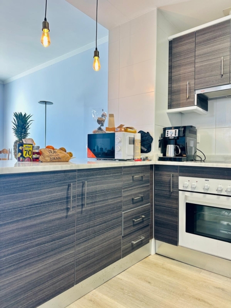 Bel appartement en revente, composé de 2 chambres, 1 salle de bain + 1 wc dans l’entrée, cuisine équipée ouverte sur le salon, salle à manger et salon.
