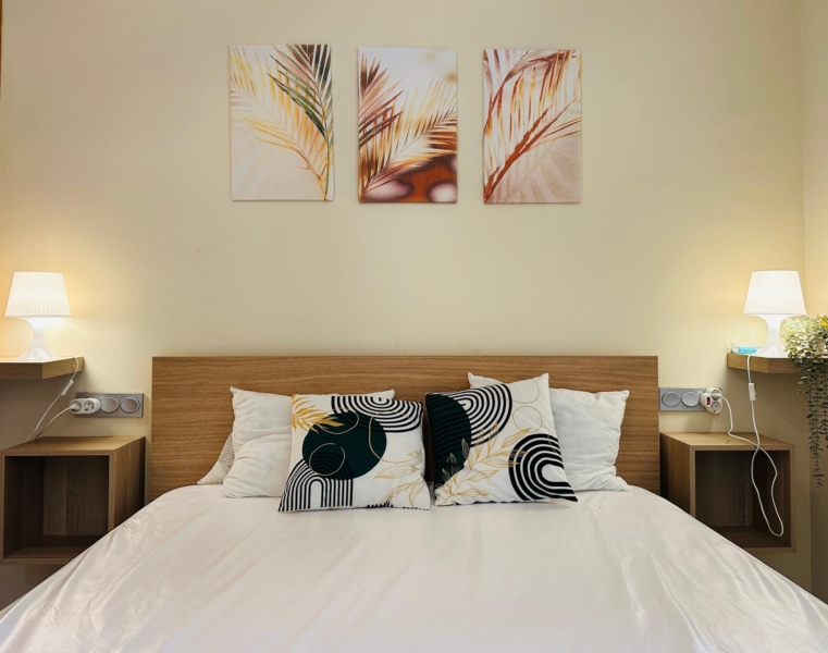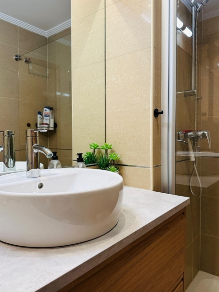 Appartement en revente composé de 2 chambres, 2 salles de bain, salon, salle à manger, cuisine équipée et espace buanderie. Parking privé.