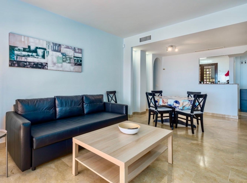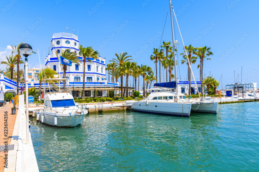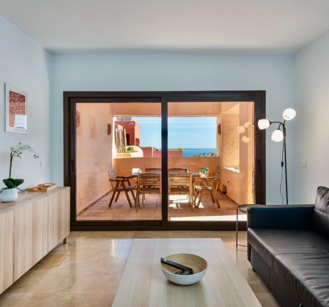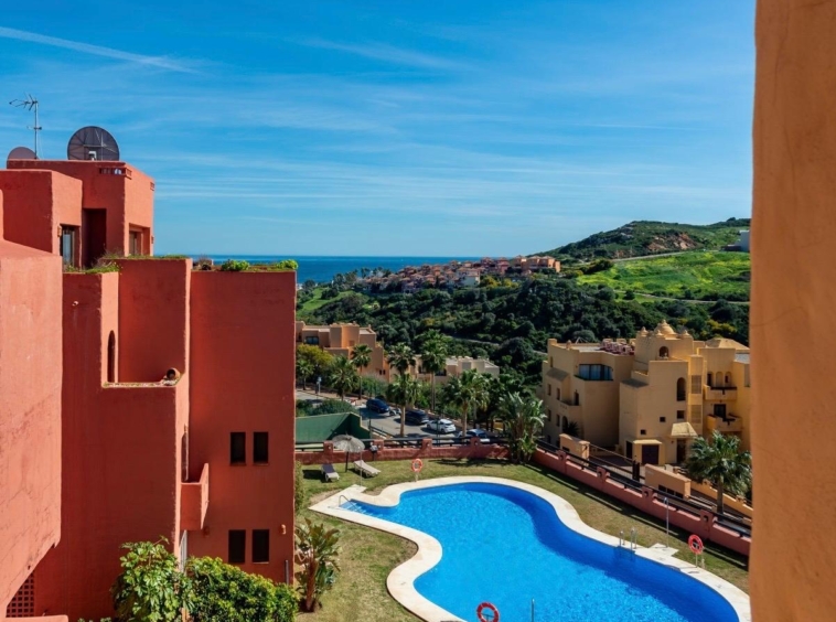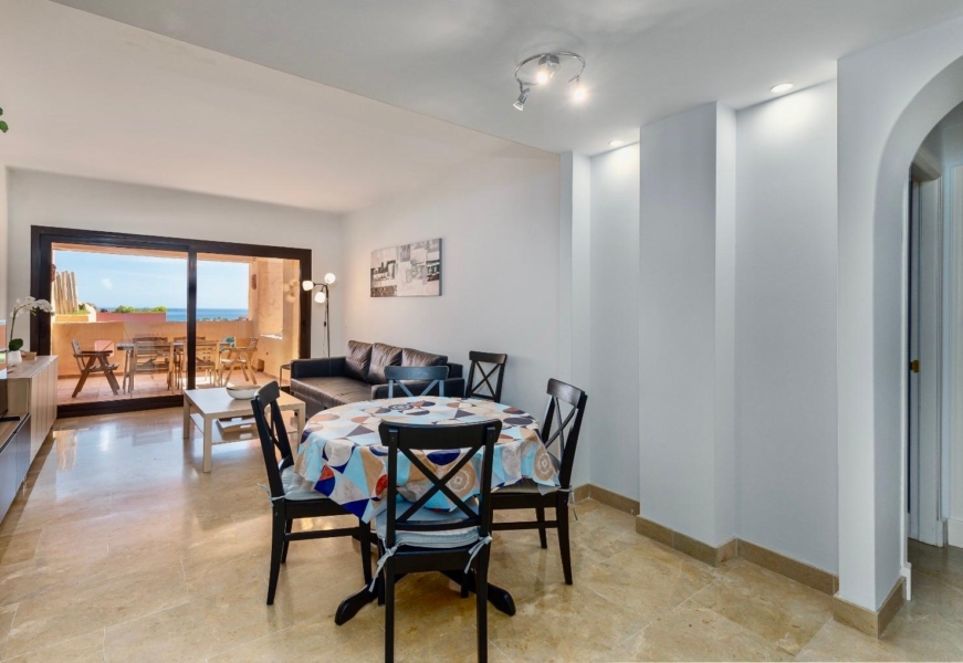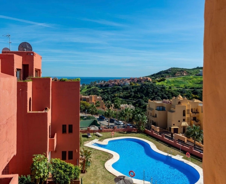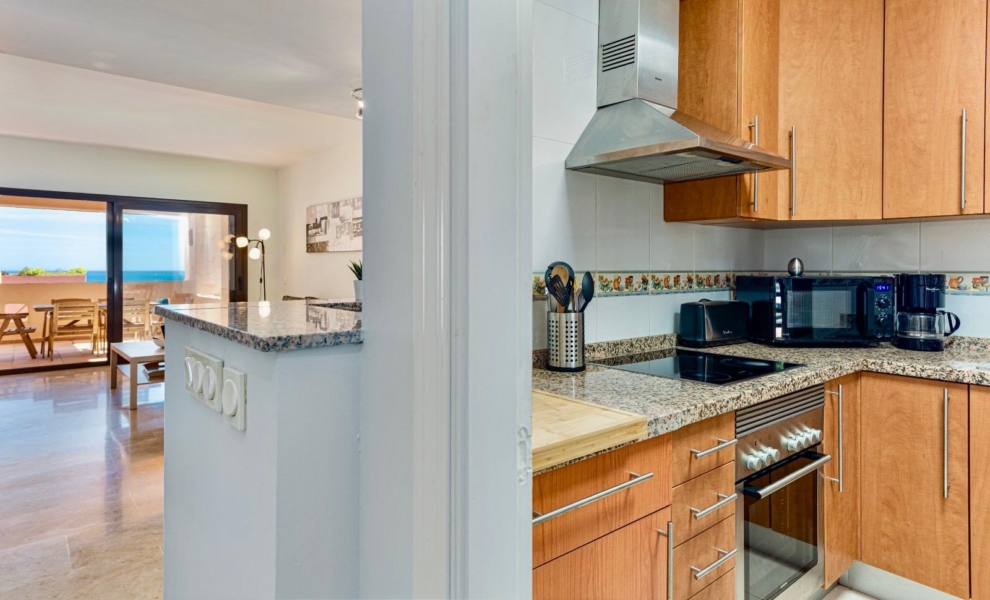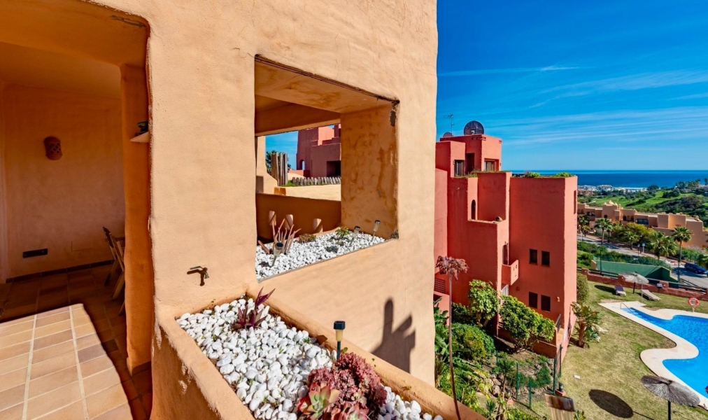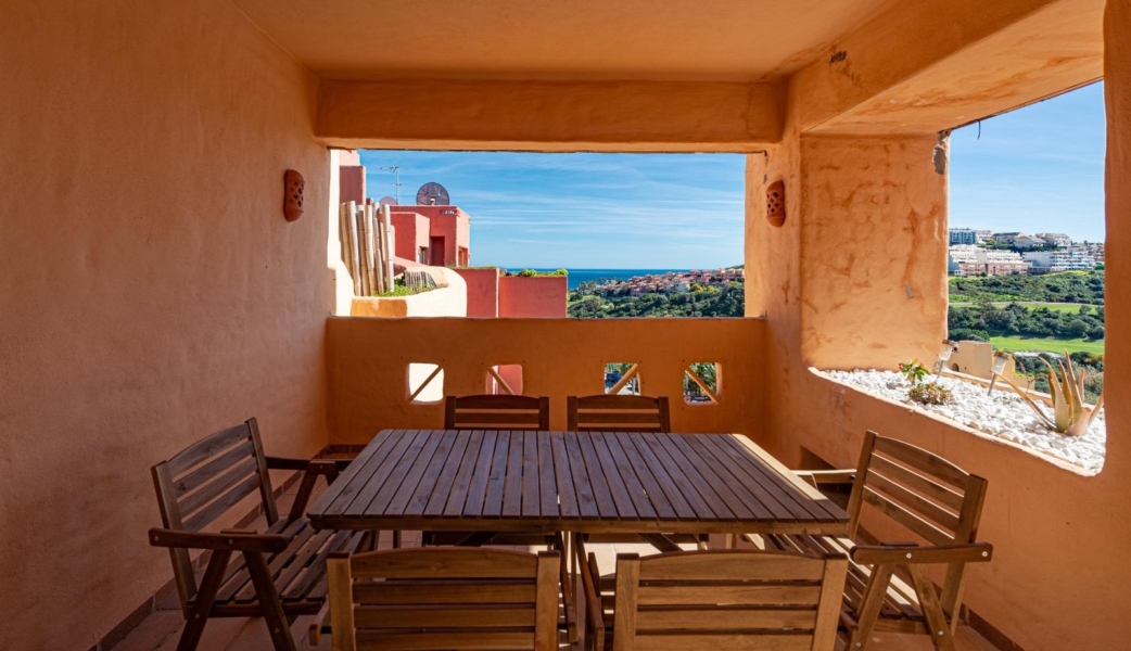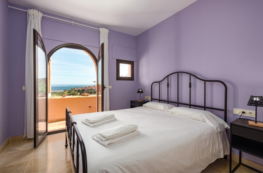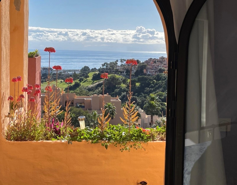 Vue mer , jardin et piscine. Idéalement situé à 1,4km du bien connu petit port de plaisance de la Duquesa, 800m du centre ville.