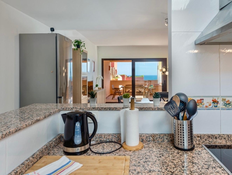 Belle vue mer depuis la cuisine, la salle a manger, le salon et la terrasse. Vue mer garantie, ne changera jamais.