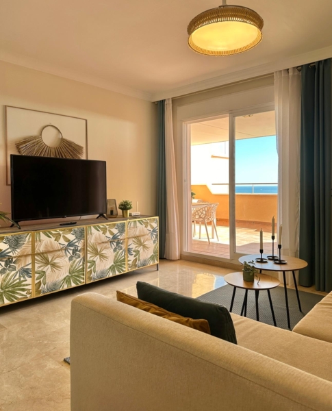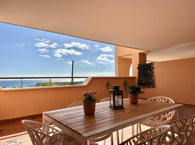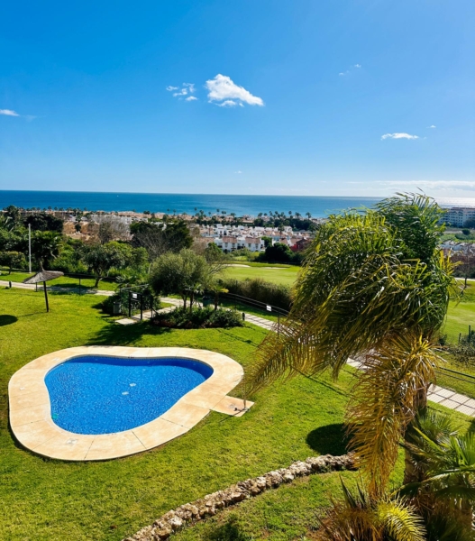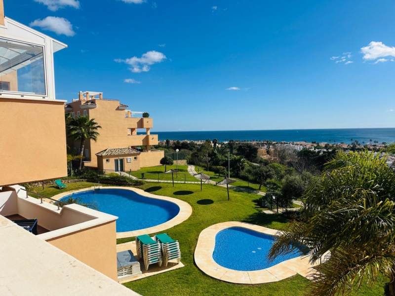 Très belle terrasse de 38m2 avec vue sur la mer, le golf, la piscine et le jardin!