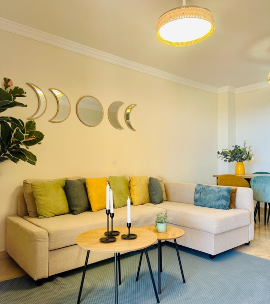 Appartement de 85m2 composé de 2 chambres, 2 salles de bain, salon, salle à manger, cuisine équipée, buanderie.