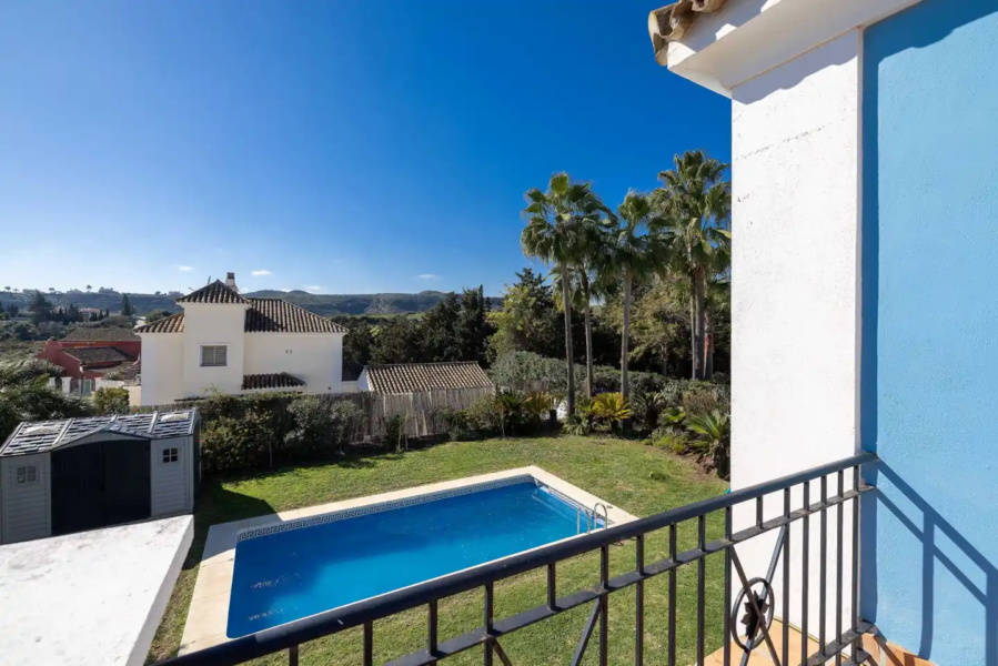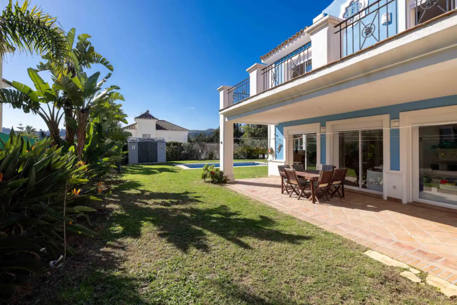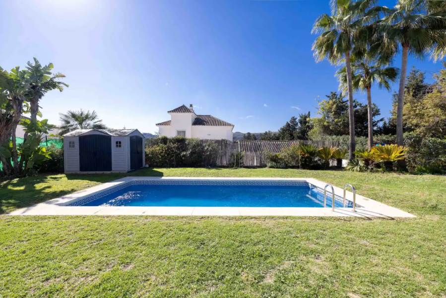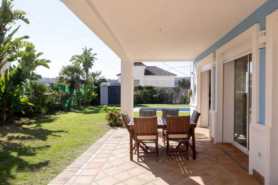Piscine privée sur un terrain de 700m carrés. La villa est idéalement située à deux pas d’un golf et seulement 1 kilomètre de la mer.
