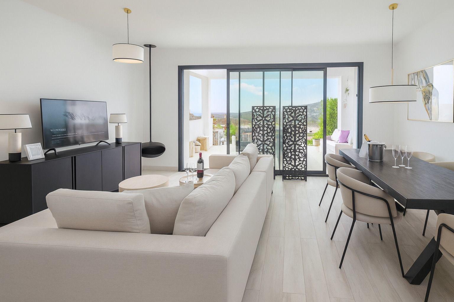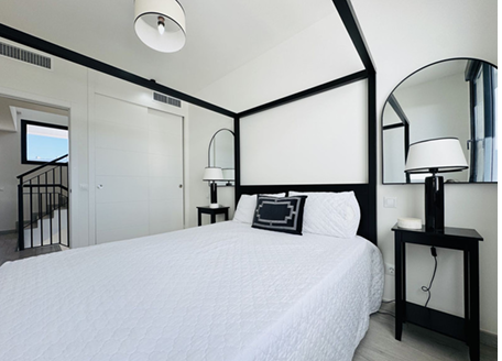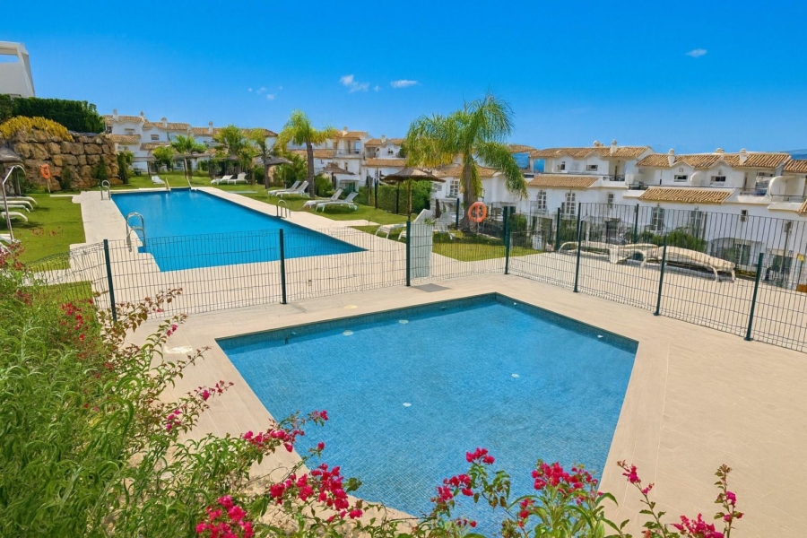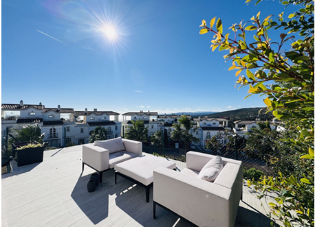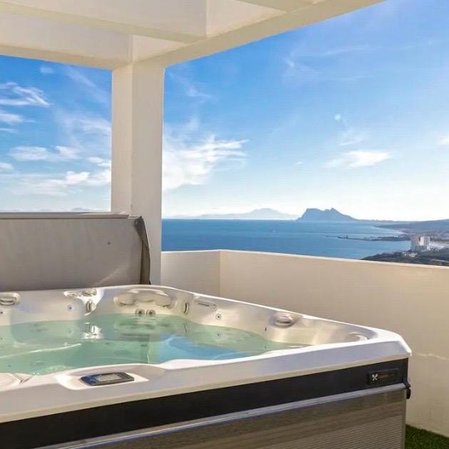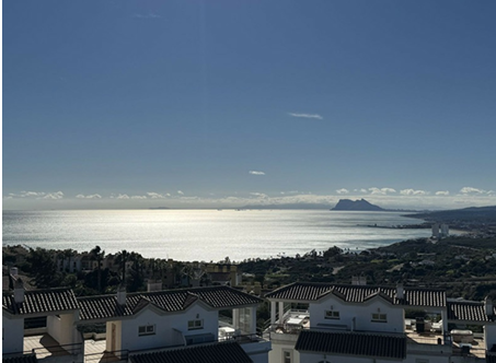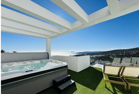 Superbe maison mitoyenne de plus de 250m2, orientée sud-ouest, offrant une vue panoramique dégagée sur la Méditerranée, les montagnes, Gibraltar et même la côte africaine.