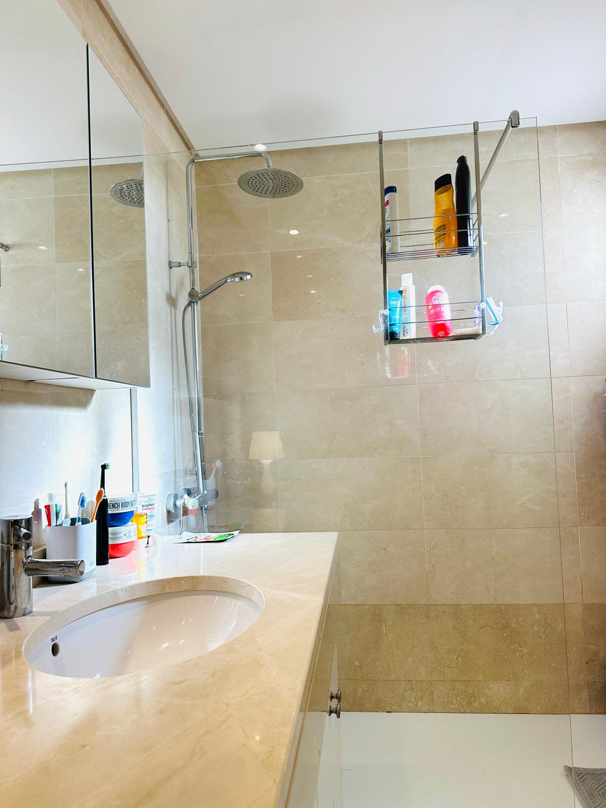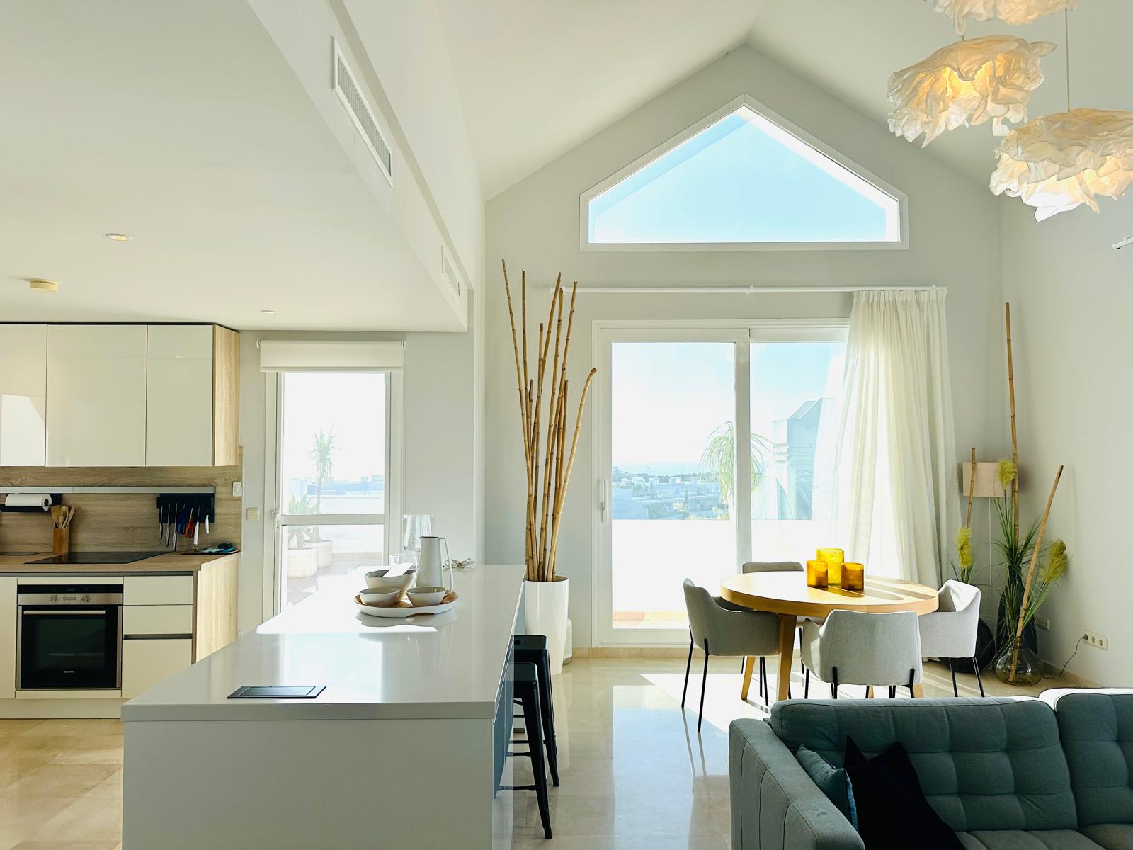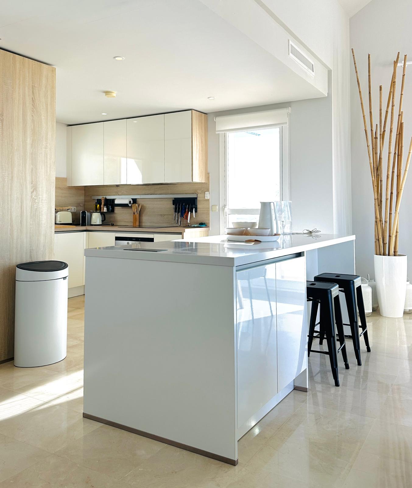 L’appartement dispose de 2 chambres, 2 salles de bain, cuisine ouverte, salon et salle à manger.
