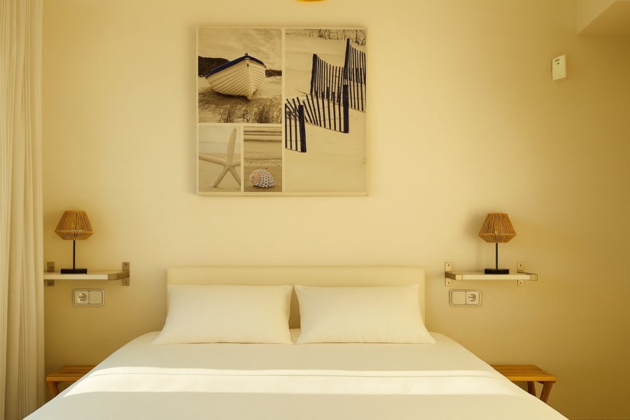 Appartement de deux chambres et deux salles de bains avec une très belle vue mer et vue piscine.