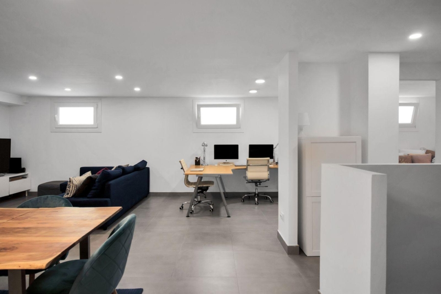 Le sous-sol, de 90m2, dispose de 3 fenêtres et est très lumineux. On y retrouve 1 salle de bain, 1 grande chambre, 1 grand salon TV, 1 espace buanderie et 1 cave.